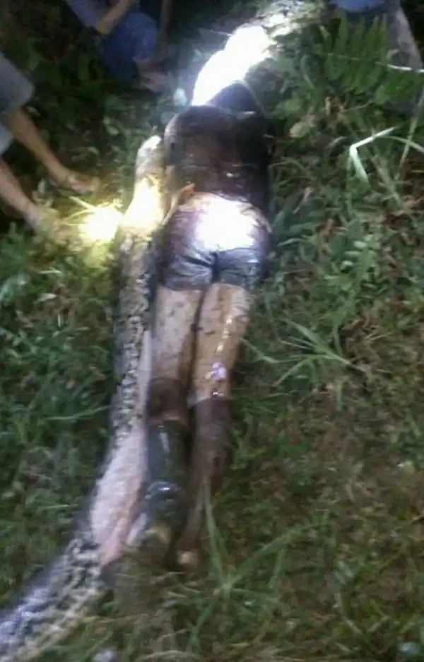 25-летний Акбар Салубиро из отдаленной деревни на западе острова Сулавеси, Индонезия, отправился на сбор урожая пальмового масла и пропал без вести. Друзья, организовавшие его поиски, обнаружили в саду Акбара 7-метрового питона с разбухшим брюхом. Каково же было потрясение местных жителей, когда при вскрытии змеи они увидели тело Салубиро.