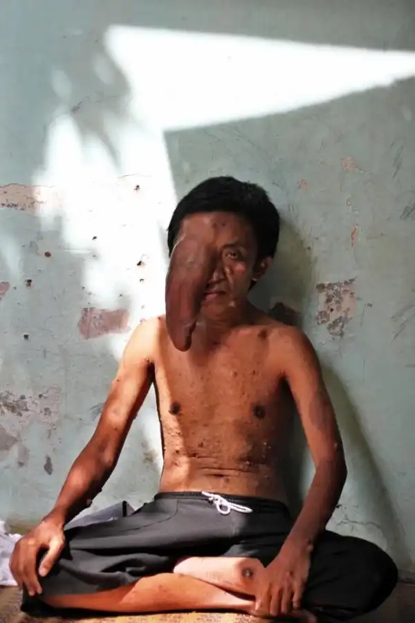 Херди Фирмансья из деревни в Индонезии страдает от огромной опухоли, свисающей с его правого глаза. Из-за образования, появившегося у него в возрасте трех месяцев, мужчина с трудом ест и говорит. Несмотря на пять операций по удалению опухоли, она продолжает расти и уже распространяется на его лицо, спину, руки, живот, грудь и ноги.