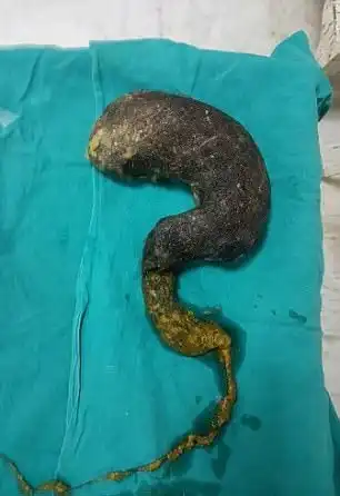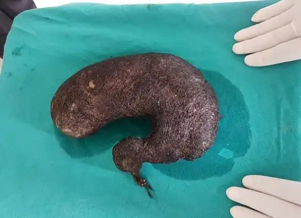 После того, как у 16-летней индианки снизился вес и возникли приступы рвоты, врачи сделали снимок и установили, что 80% ее желудка занимает огромная масса. Во время операции выяснилось, что образование - это клубок волос, которые девушка тайно поедала на протяжении многих лет. После операции отец пациентки сообщил, что ей стало гораздо лучше.