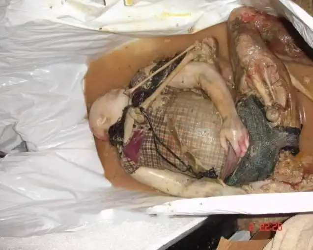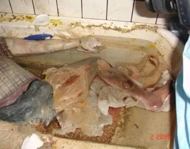 От чего умерла - не понятно. но никакая эт не кислотень - просто вода. она разложилась просто. уже недельки три лежит...ох, какая же там вонь то... Сгоревшие трупы так не воняют))
