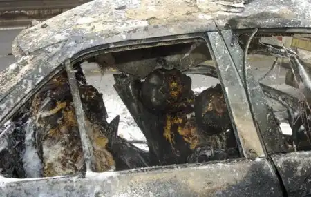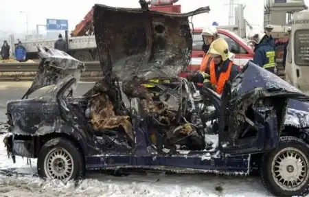 Сразу предупреждаю... жесть! Лучше не смотреть. После аварии мгновенно загорелась машина, никто не успел вылезти.
