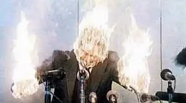 В очень редких случаях человек, подверженный пирокинезу, может поджечь окружающие его предметы силой мысли. Сам он при этом остается живым и невредимым. Но не долго. Через достаточно непродолжительное время он и сам воспламеняется... Японцы даже сняли про самовозгорание людей фантастический триллер. Назвали незатейливо -«Пирокинез». Это кадр из него.