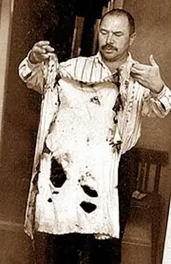 Другой случай самовозгорания произошел в Томске. Мужчина погиб в коридоре своего предприятия. Пламя пылало до потолка, но человек даже не пытался его сбить. "Бедняга сгорел, даже не шевельнувшись, - рассказывает директор Томского центра биоэнергетики Виктор Фефелов. – Как будто у него отключились рефлексы. Его тело потушили и отправили на экспертизу. И выяснилось, что в легких не было следов угарного газа, который всегда есть у погибших на обычном пожаре. Еще один странный признак: потушить с помощью воды пламя было невозможно. И самое удивительное, что окружающие предметы оказались нетронутыми".