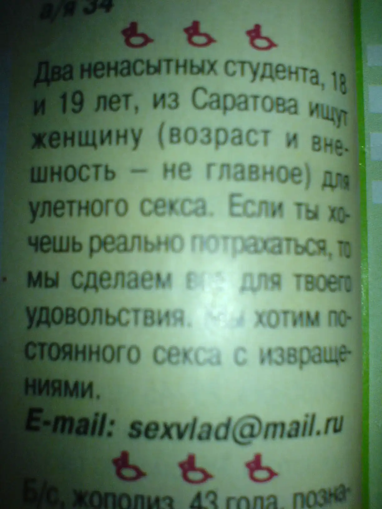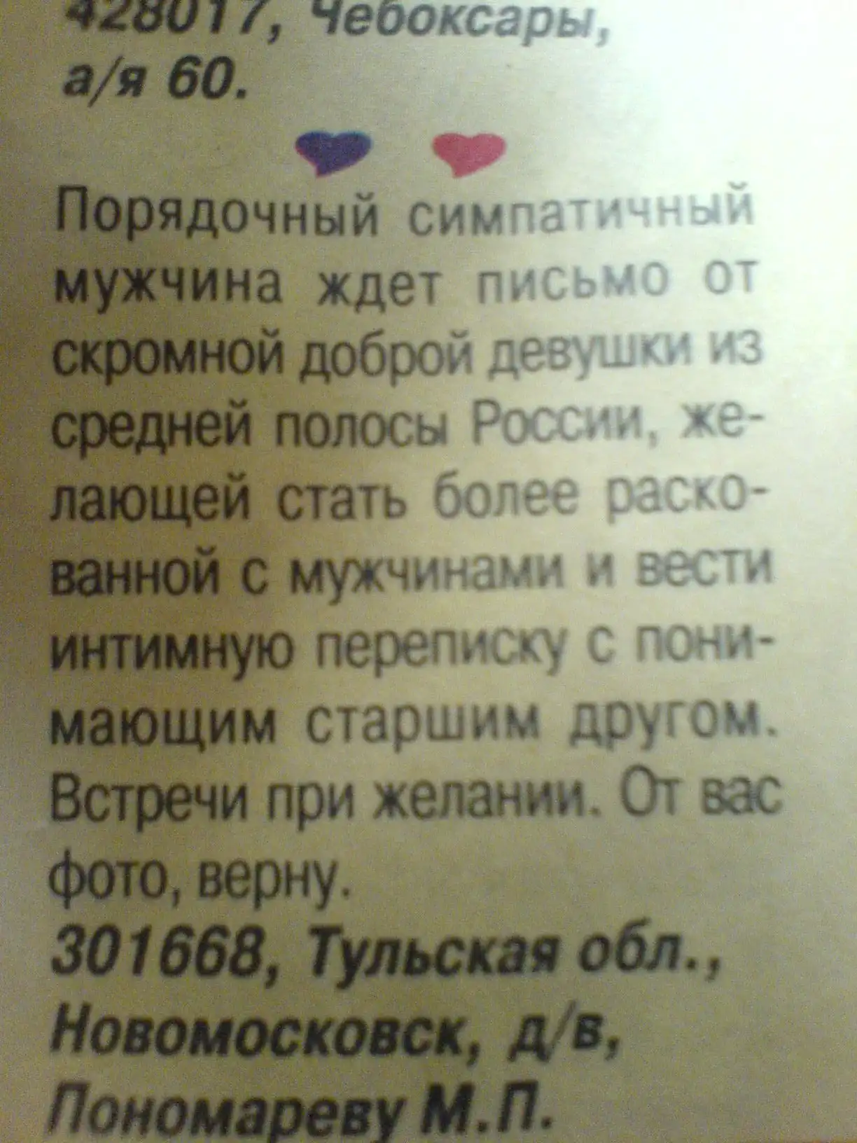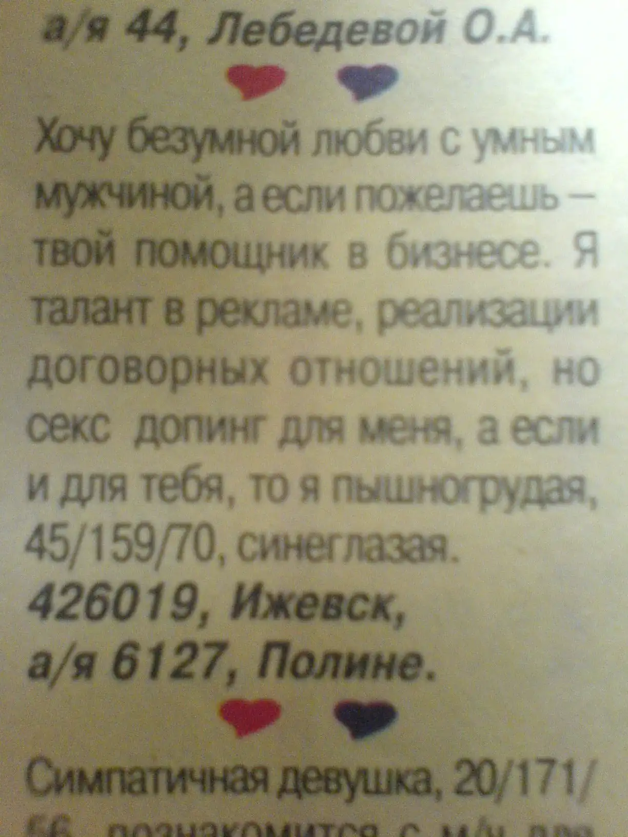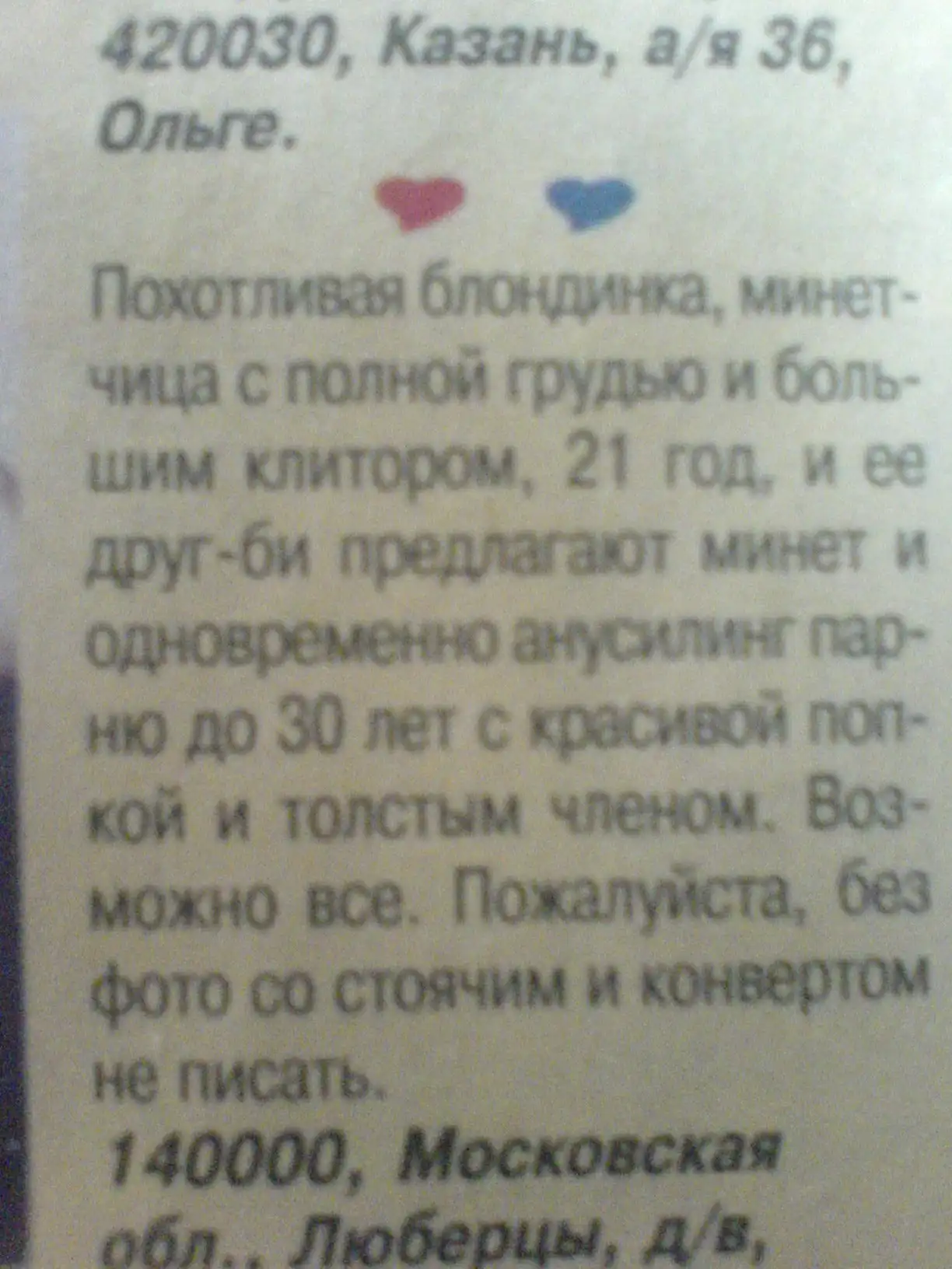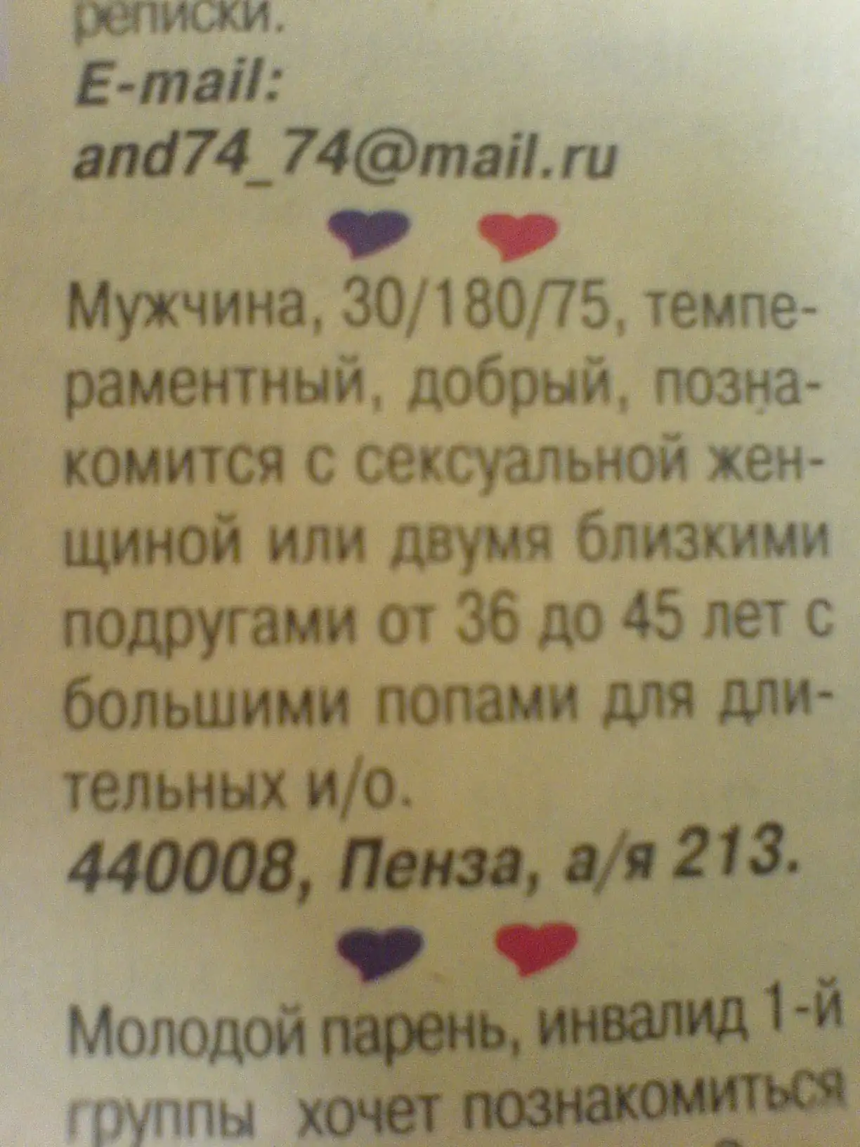 единомышленники таких людей. Дальше следует подборка объявлений с этого журнала, что бы вы не подумали что я их выдумал, я их сфотал.