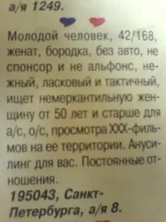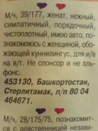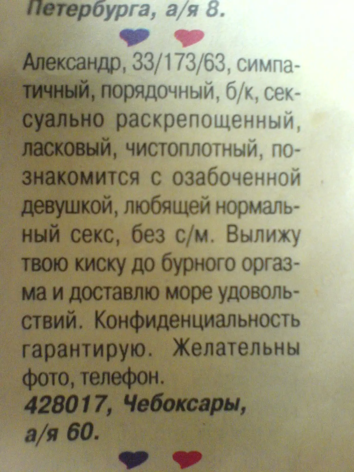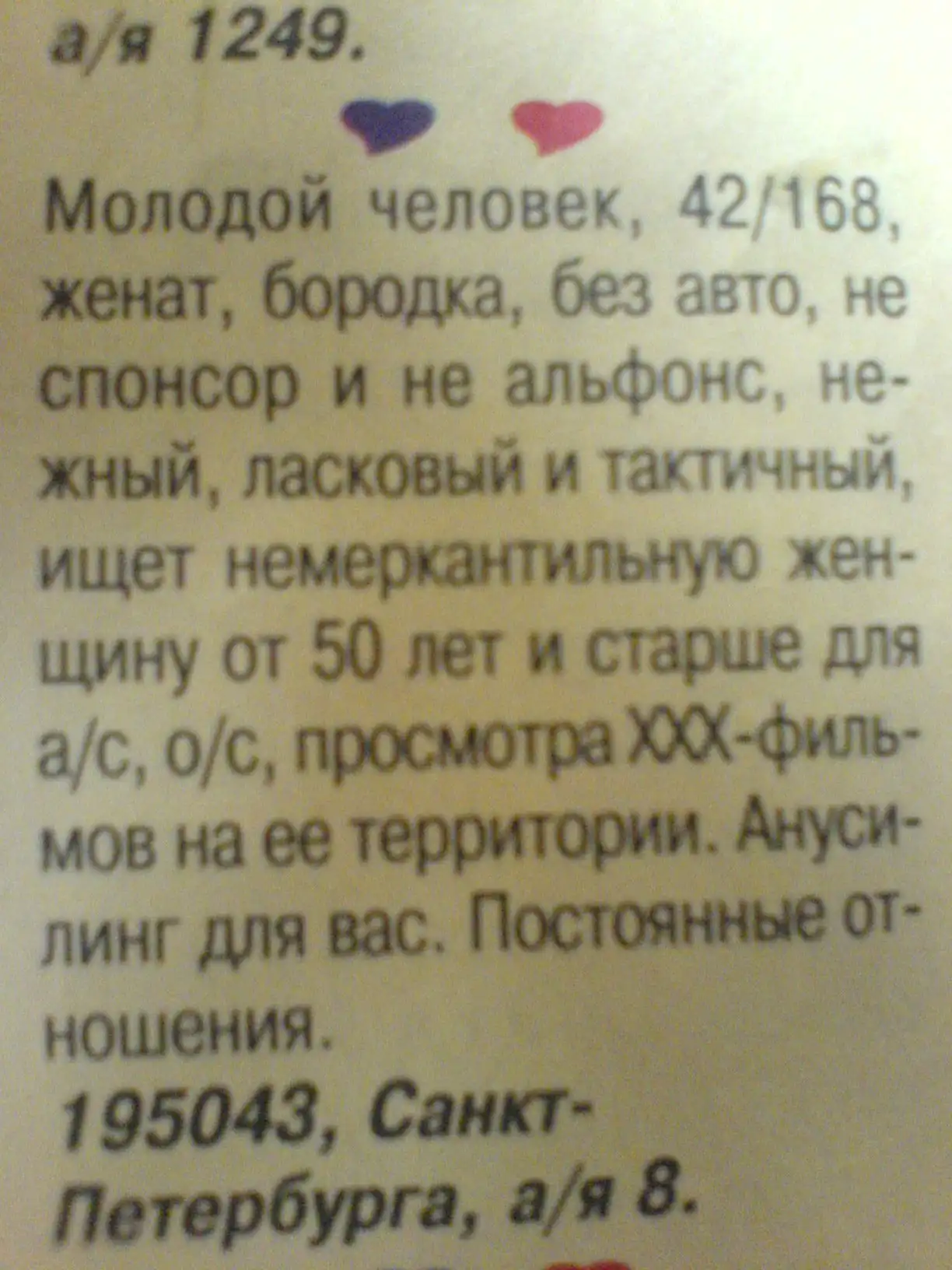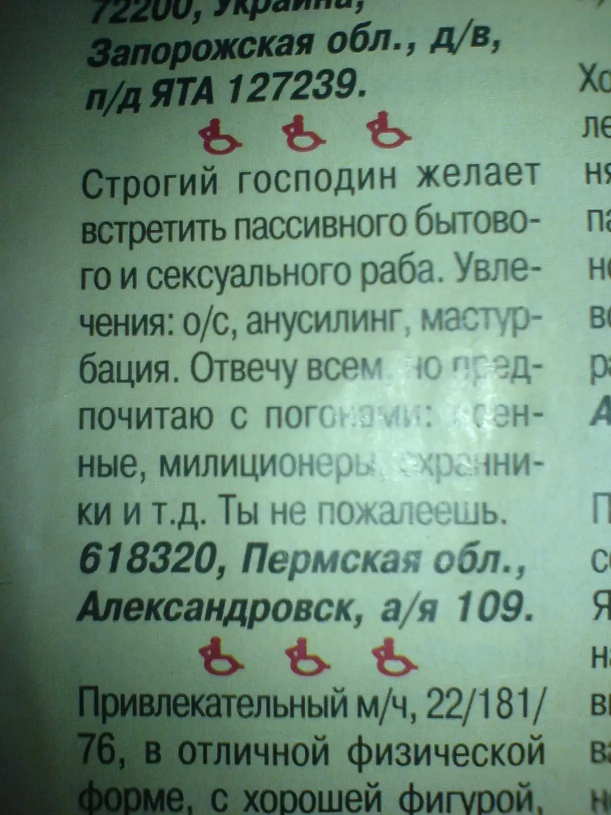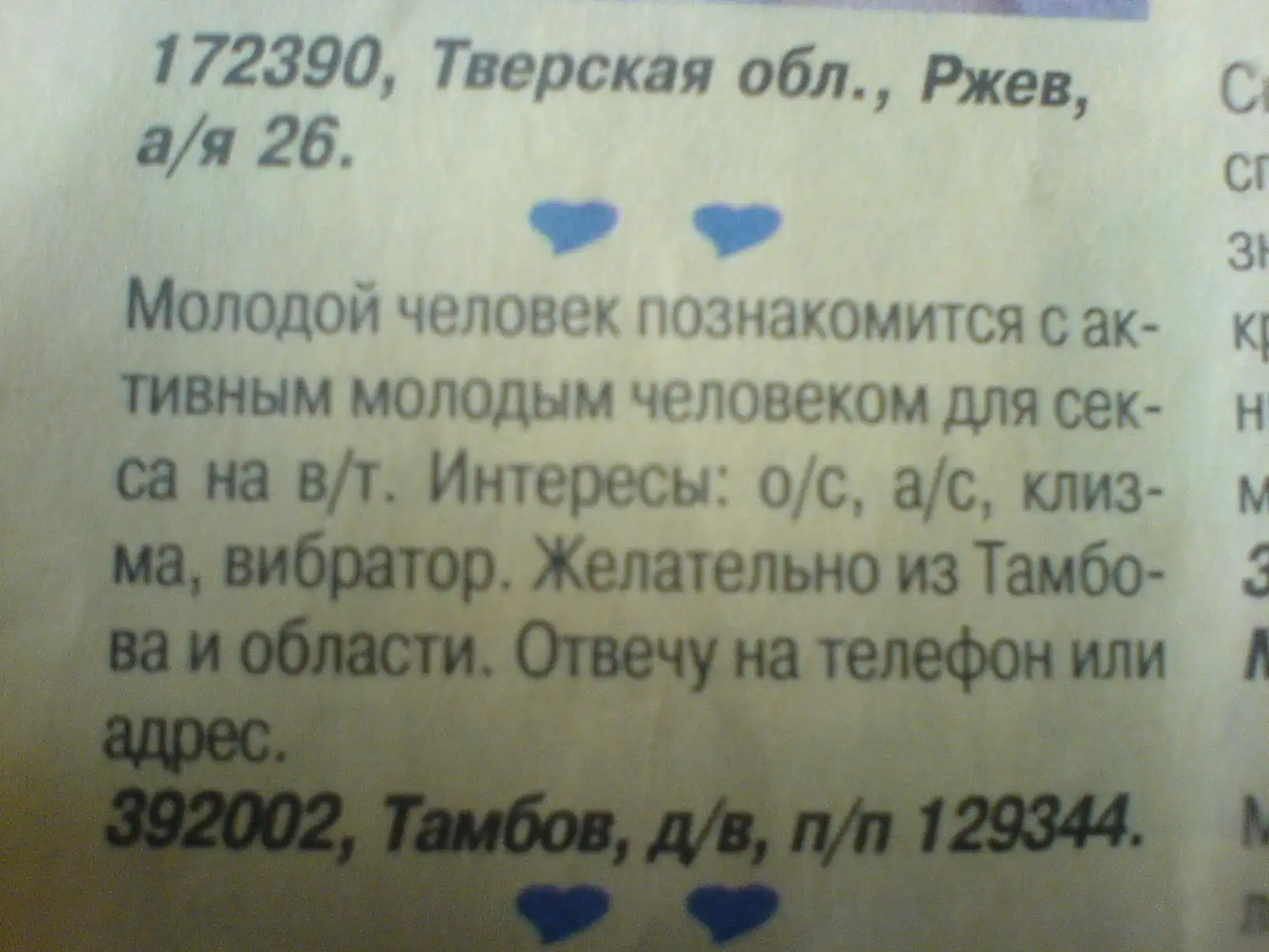 единомышленники таких людей. Дальше следует подборка объявлений с этого журнала, что бы вы не подумали что я их выдумал, я их сфотал.