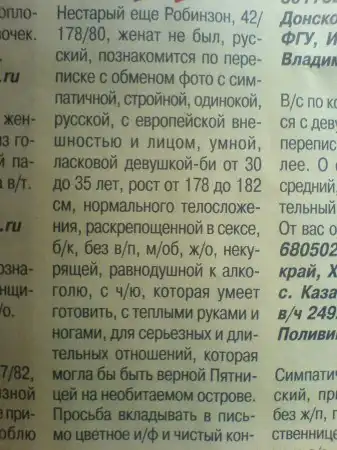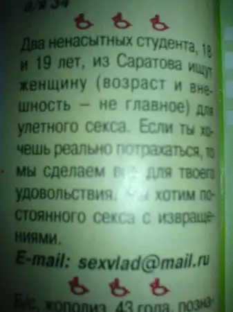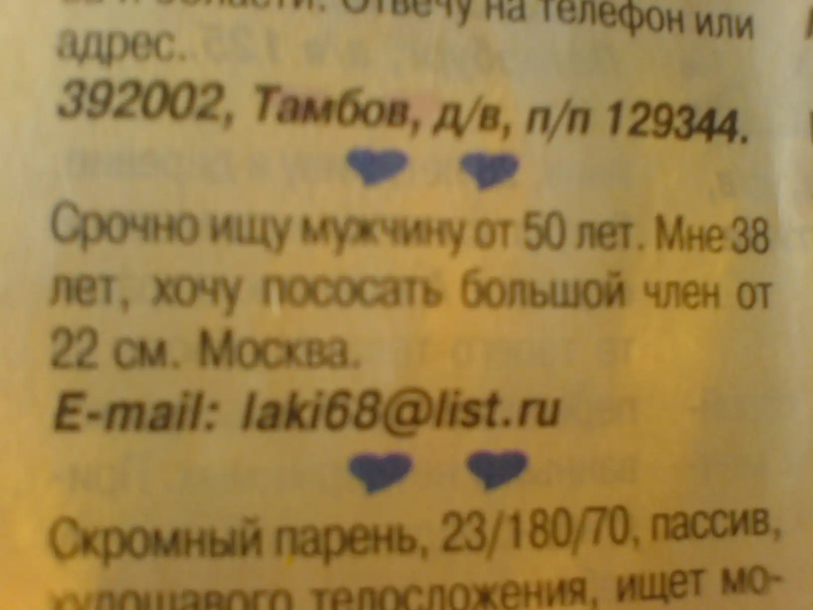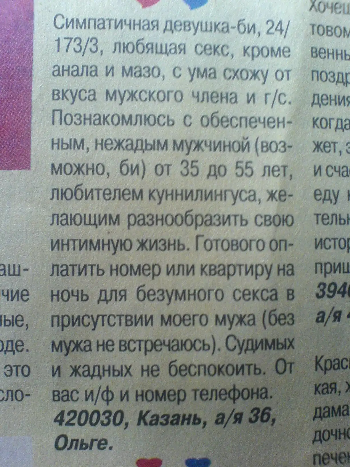 В этом посте я постарался привести и угадать все ваши эротические фантазии! Как то недавно мне в руки попался один журнальчик, там в "Знакомствах" я вычитал много интересного. От куда такие люди берутся просто не понимаю. Но просто уверен, что среди вас имеются