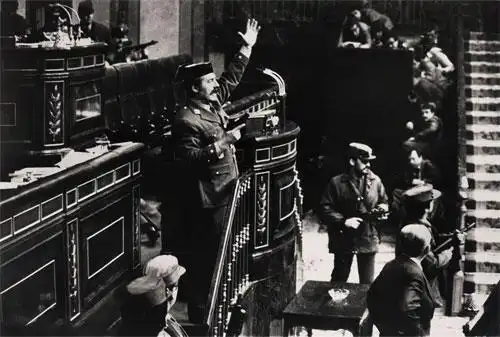 23 февраля 1981 года. Мадрид. Испания. Лейтенант-полковник Антонио Тейеро Молина и члены гражданской гвардии и военная полиция удерживают в заложниках испанский парламент. Автор Мануэль Перес Барриопедро.