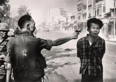 1 февраля 1968 года. Сайгон в Южном Вьетнаме. Шеф южновьетнамской национальной полиции Нгуйен Нгок Лоан приводит в исполнение приговор над солдатом вьетконговской армии. Автор - Эдди Адамс.