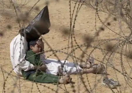 31 марта 2003 года. Ирак. Мужчина пытается смягчить тяжелые условия сыну в тюрьме для военопленных. Автор - Жан-Марк Бужу.