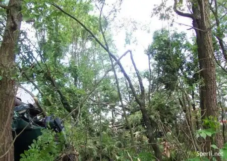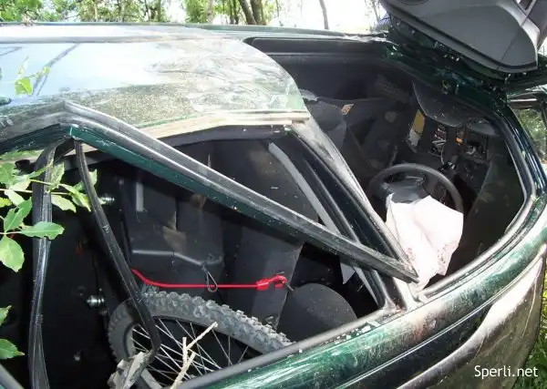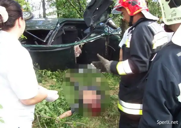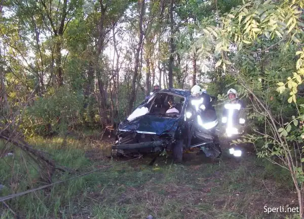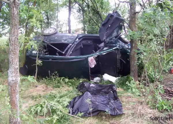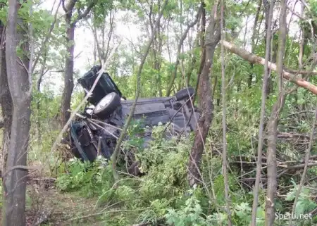 Машина ушла с трасссы, видимо на большой скорости , неизвестно что стало помехой.