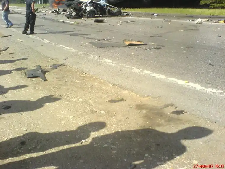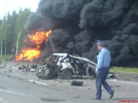 Трагедия произошла месяц назад в 16.20 на 29 м километре Ленинградского шоссе в районе Солнечногорска. Водитель БМВ пошел на обгон по правой стороне, а затем выехал на встречную полосу и врезалась в бензовоз. От полученного удара машина с топливом съехала в кювет и загорелась.Потом БМВ зацепил еще одну иномарку, вновь вылетел на свою полосу и столкнулся с автовозом. Три человека, находившиеся в БМВ, погибли. Из-за аварии на протяжении 2 часов движение по Большому и Малому бетонному кольцу было перекрыто.