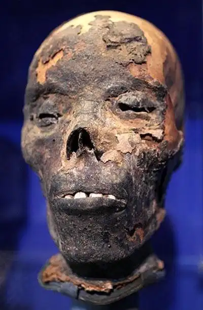Конечно, никакая выставка мумий не была бы полной без мумии из Египта – этой голове более 2 000 лет…