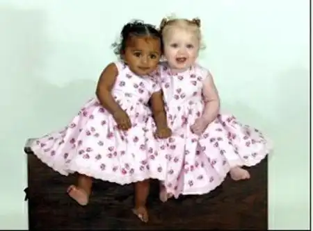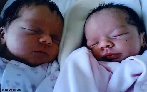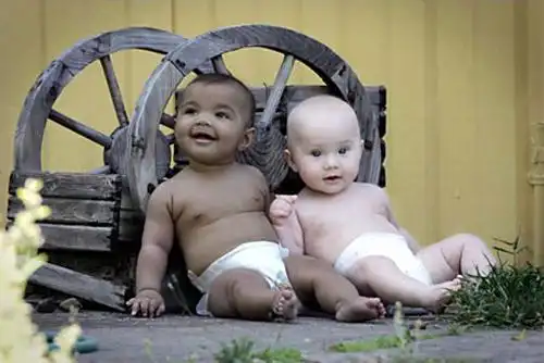 Бывают в жизни у близнецов и, так сказать, курьезы... Пятимесячные сестры Алисия и Жасмин Зингерл (на снимке) уже одновременно поворачивают головы, когда родители выходят с ними на улицу. На них слишком часто показывают пальцем. Дело в том, что Алисия чернокожая и кареглазая, а Жасмин – голубоглазая и белокожая...