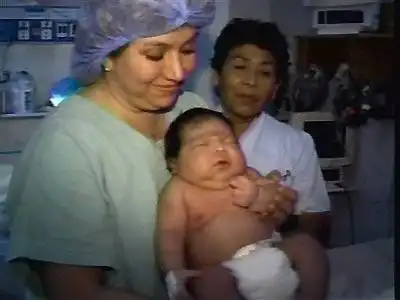 Перед вами снимок нерождённого младенца, его возраст - 21 неделя. Его зовут Сэмюэль Александер Армас, и его оперирует хирург по имени Джозеф Брюнер. Младенцу был поставлен диагноз spina bifida (врождённый неизлечимый дефект позвоночника, при котором человек не способен прямо держаться и нормально ходить). Однако хирургическое вмешательство на стадии формирования позвоночника, когда младенец ещё находится в утробе матери, позволяет полностью устранить этот дефект. Когда доктор Брюнер закончил оперировать маленького Сэмюэля, малыш высунул свою крохотную, но полностью развитую ручонку через надрез и крепко схватил хирурга за палец... Сэмюэль родился полностью здоровым!.. Но мальчик бы не выжил, если бы его извлекли из утробы матери...