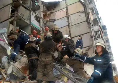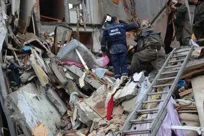 Взрыв произошел в 10-этажном доме, при этом взрывной волной повреждены еще два 9-этажных дома, а также соседние частные постройки.