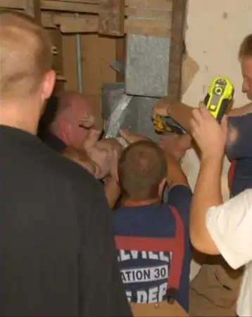 18-и месячный Патрик играл на втором этаже в спальной и нечаянно провалился в воздуховод проходящий в стене. Ребенок провалился на 3 метра вниз и застрял в трубе. По вызову родителей прибыли пожарные, которые благополучно спасли дитя. Родители все время нахождения ребенка за стеной очень переживали за него, но все обошлось благополучно.