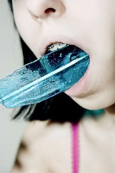 И, разумеется, просто необходимо дать модели что-нибудь пососать... Напрмер, леденец...