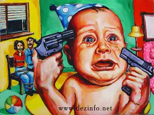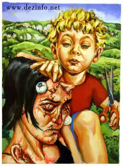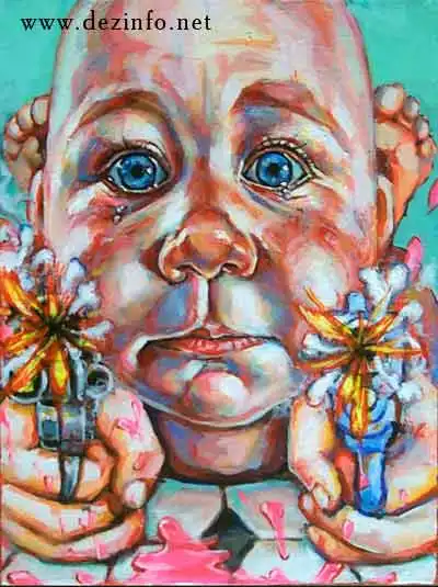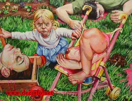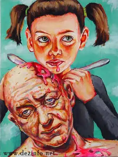Однажды все дети ополчились на взрослых и решили их убить. Кого как – кого-то просто пристрелили, кого-то задушили, кому-то отвернули голову. Художник Галеб Вайнтрауб (Caleb Weintraub) запечатлел на своих полотнах, как происходит процесс расправы.