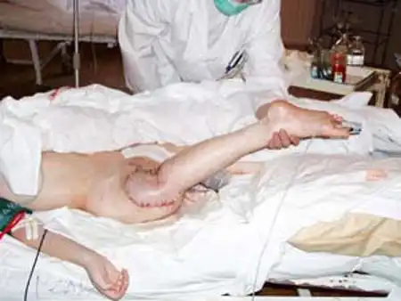 Когда Даша сделала рентген ноги оказалось, что кость разрыхлилась и стала раздаваться в объемах. А потом Даша упала и повредила ногу. Травмированная кость треснула, внутри стала расти опухоль. Даше назначили облучение, после чего опухоль только увеличилась и из доброкачественной превратилась в злокачественную. Врачи вынесли свой приговор: ампутация. Причем, как говорится, "по самое никуда"...