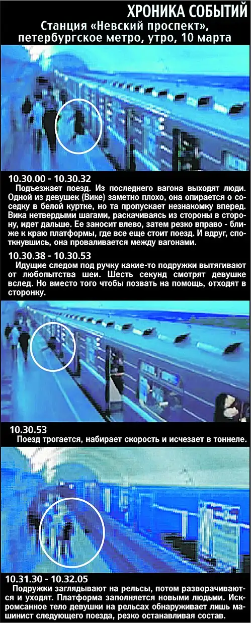 Шокирующие кадры остались на внутренних видеокамерах станции. И вскоре просочились в интернет. Когда свидетелей смерти нашли, оказалось, что они в тот момент просто «решили не заморачиваться»…