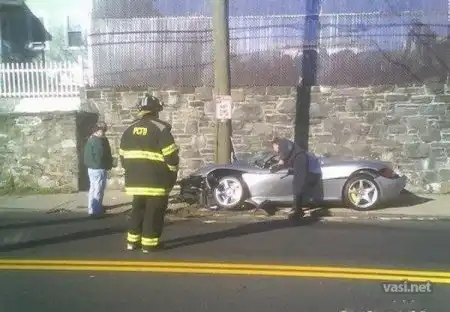 Очередной суперкар попал в аварию, на этот раз Porsche Carrera GT. Этот болид, количество выпущенных экземпляров которого не превышает 1250штук, является прямым конкурентом Ferrari и Lamborghini. Porsche Carrera GT оснащен десятицилиндровым 5,7 литровым мотором мощностью 605л.с. Уникальная 6-ступенчатая механическая коробка передач, оснащенная керамическим сцеплением, вкупе с мощным двигателем разгоняет автомобиль до 100 км/ч за 3,9 секунды, максимальная скорость – свыше 330 км/ч.