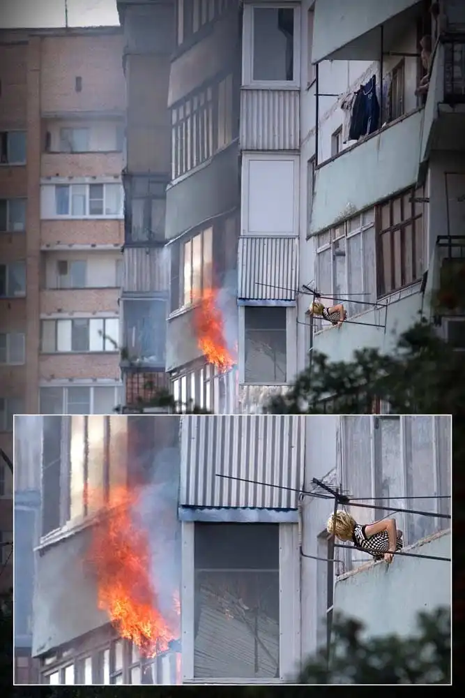 Женщина видит, как огонь "цепляет" её квартиру и умоляет пожарных сделать хоть что-нибудь... Ужасно на такое смотреть... не приведи Господи.