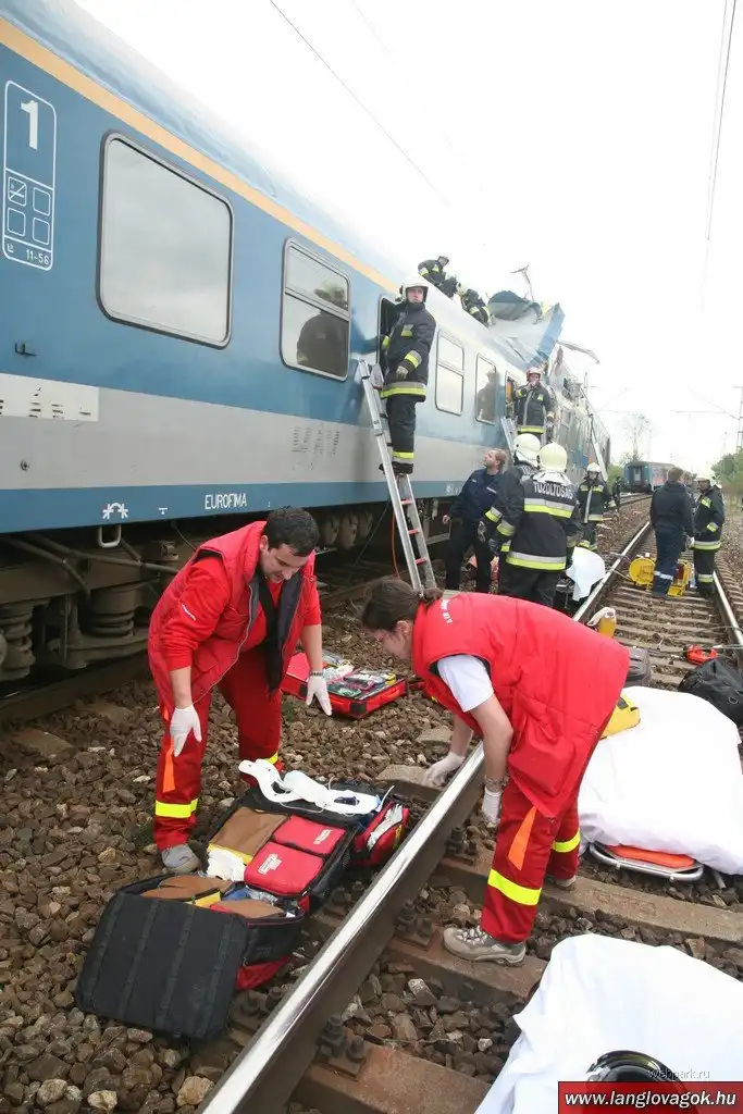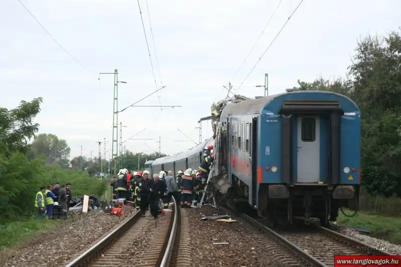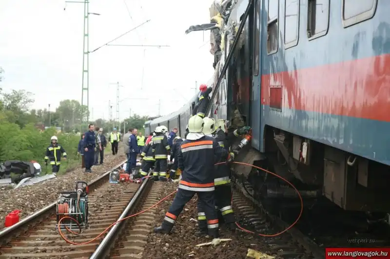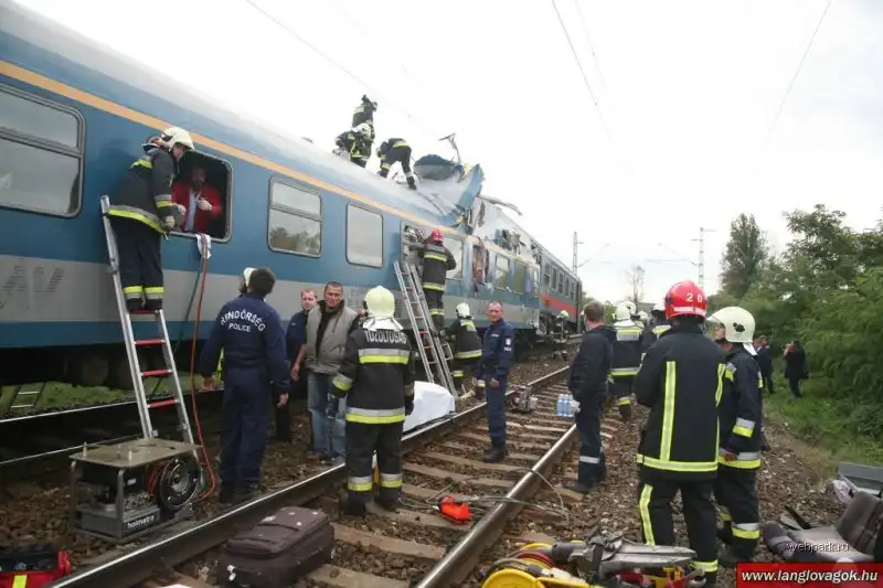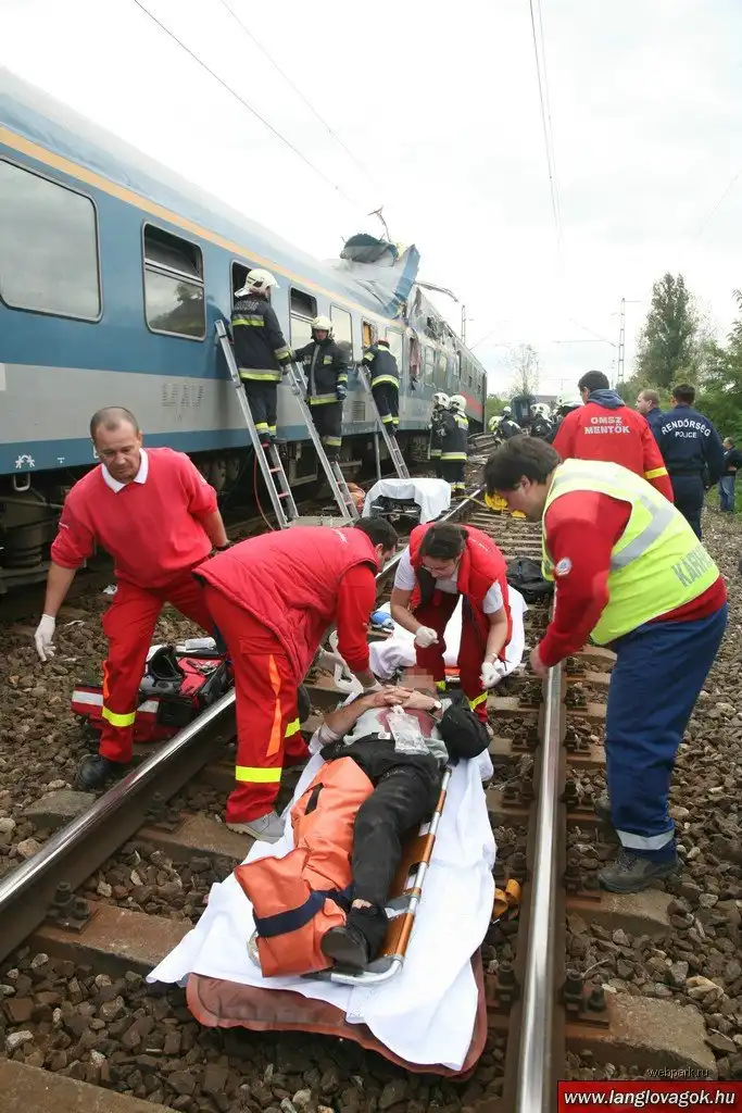 Столкновение произошло в 50 километрах к востоку от Будапешта. Предположительно, один из поездов двигался слишком медленно, и потому он столкнулся со следовавшим за ним составом.