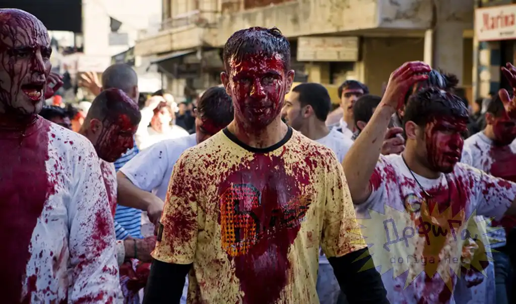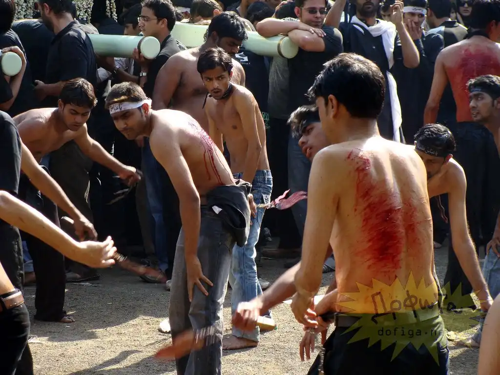 По данным сайта all-news.net, в эти дни в Ираке, Иране, на юге Ливана и в других странах, где шииты составляют большую часть населения, по улицам проходят скорбные процессии с черными знаменами и разыгрываются мистерии о гибели Хусайна, часто сопровождающиеся самоистязаниями верующих.Маленьких мальчиков тоже приобщают к ритуалу. Детям делают надрез на голове.