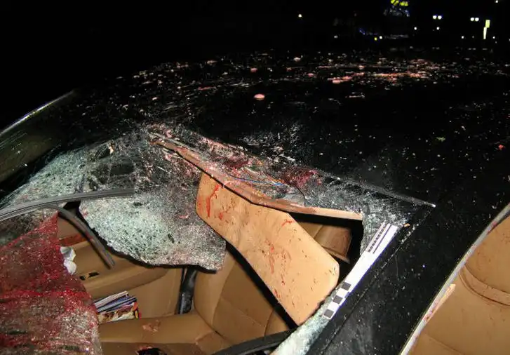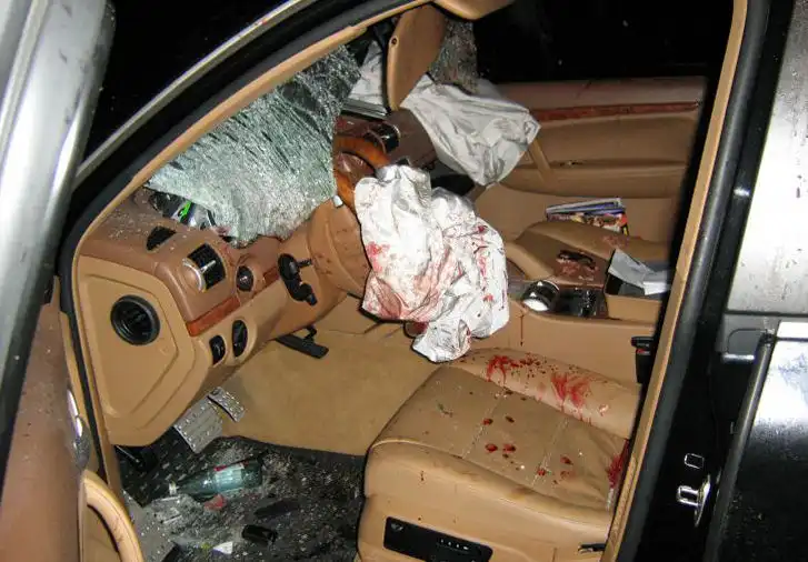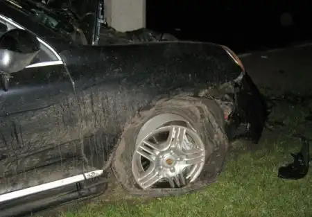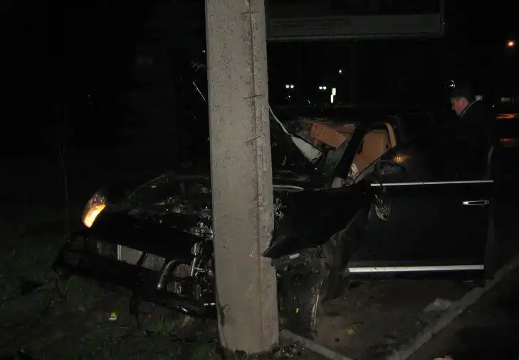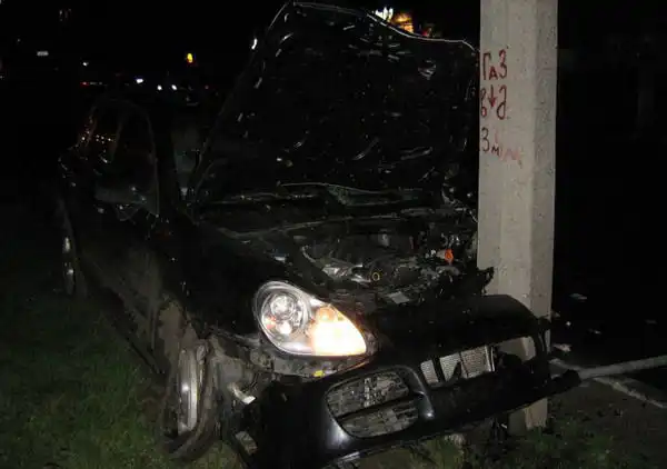 врезался в столб, предварительно сбив насмерть 3-х человек на пешеходном переходе. На последних фото водитель и пассажир Каена.