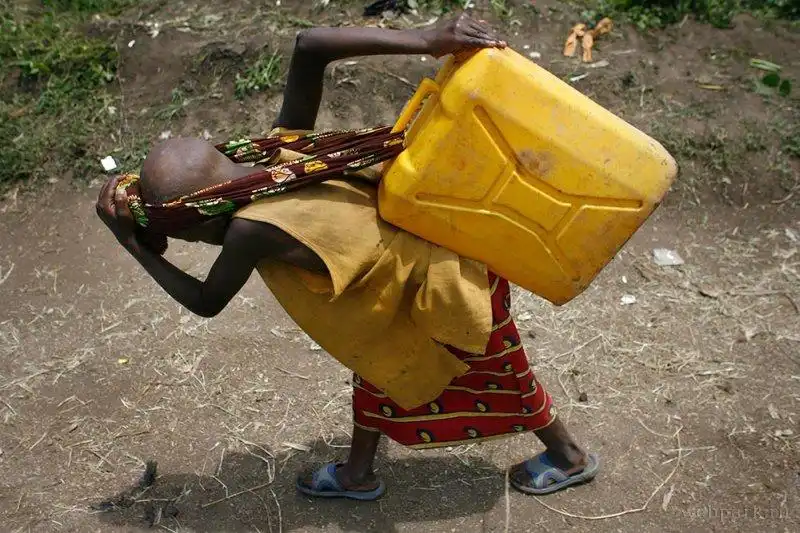 04 | Мальчик несет воду в лагерь беженцев около базы войск ООН в Киванье.