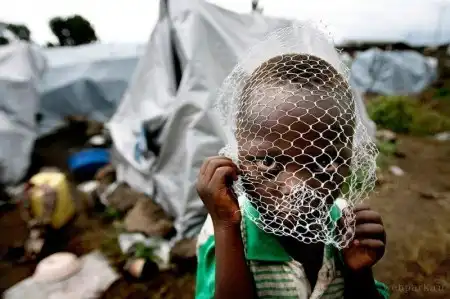 02 | В лагере беженцев Китуку. Трехлетний Проспер показывает, какая "противомоскитная сетка" у него есть.