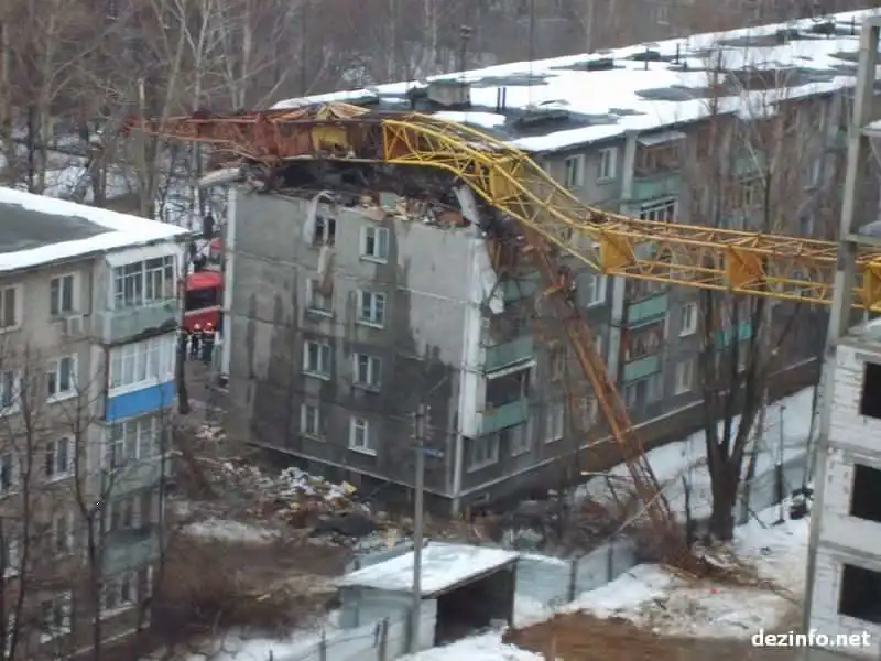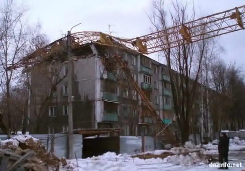 На строительной площадке жилого 17-ти этажного дома в Нижнем Новгороде упал строительный кран, который задел стоящий рядом пятиэтажный жилой дом.