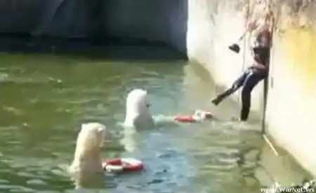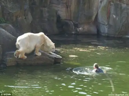 В Берлинском зоопарке женщина прыгнула в вольер к белым медведям, в числе которых был и знаменитый медвежонок Кнут, сообщает Associated Press 10 апреля.