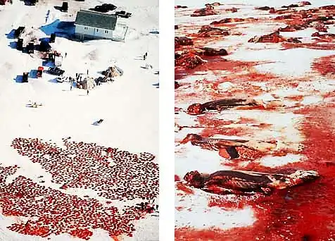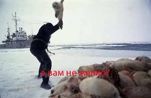 Белёк-новорожденный детёныш тюленя. Эта бойня сравнима с убийством детей!!! Ведь бельки даже кричат как дети: "ма-ма-ма-ма..." Их забивают дубинками, чтобы не испортить ценный мех, и убить малыша получается не с первого раза. Порой шкуру сдирают с ещё живого существа!!!