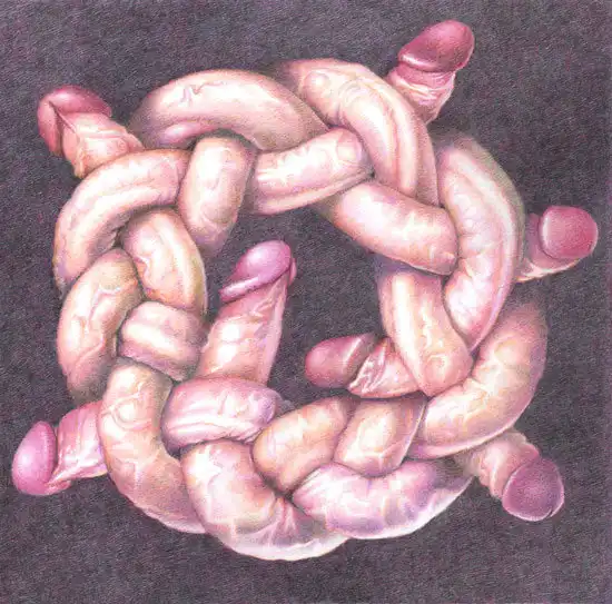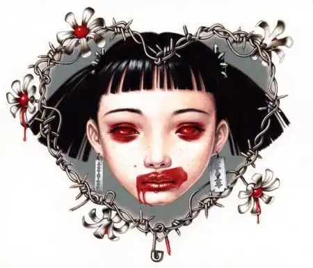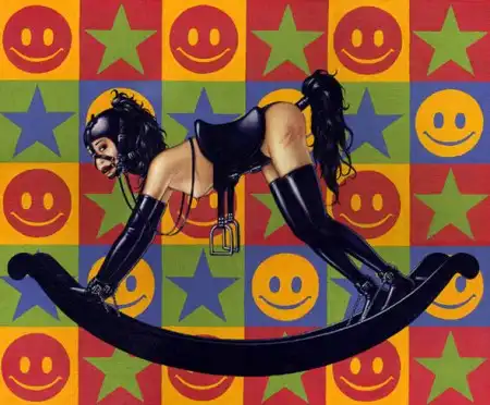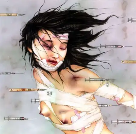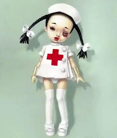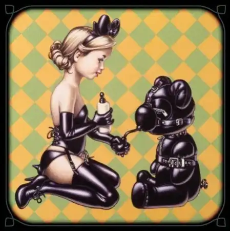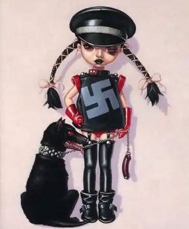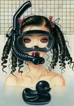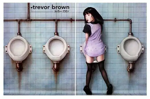 Макабрический мир Тревора Брауна – в его полотнах, комиксах, открытках – это издевательское торжество глобализации. Обобщённый образ – старшеклассница, похожая на Гого Юбари из «Килл Билл», в клетчатой юбочке и связанными руками сидит рядом с одноглазым Микки-Маусом, а над этой идиллией – пентаграмма какая-нибудь. Естественно, главные ингредиенты этой «восточно-западной» кухни – членовредительское (в самом буквальном смысле) порно, мистические пытки, медицинские инструменты с бинтами, подростковые забавы, раскуроченные игрушки, восточный фетишизм, связывание и дисциплина.