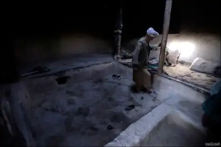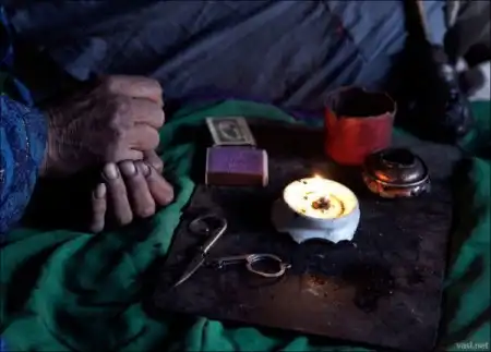 Ислам Бег убирает остатки опиума после утреннего курения.