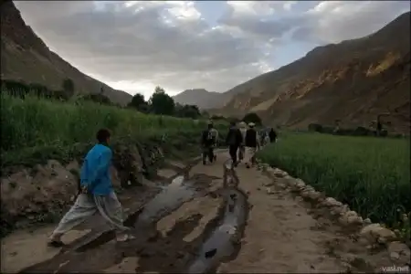 Жители деревни Сараб идут по грязной дорожке из одной части деревни в другую. Снимок сделан в афганской провинции Бадахшан, 12 июля. Расположение на высоте 2,5 км над уровнем моря, а также тот факт, что это последняя деревня вверх по речной долине, делают путешествие по грязным дорогам к докторам довольно затрудненным. «Опиум – наш доктор», - говорит житель деревни, использующий опиум для облегчения боли.
