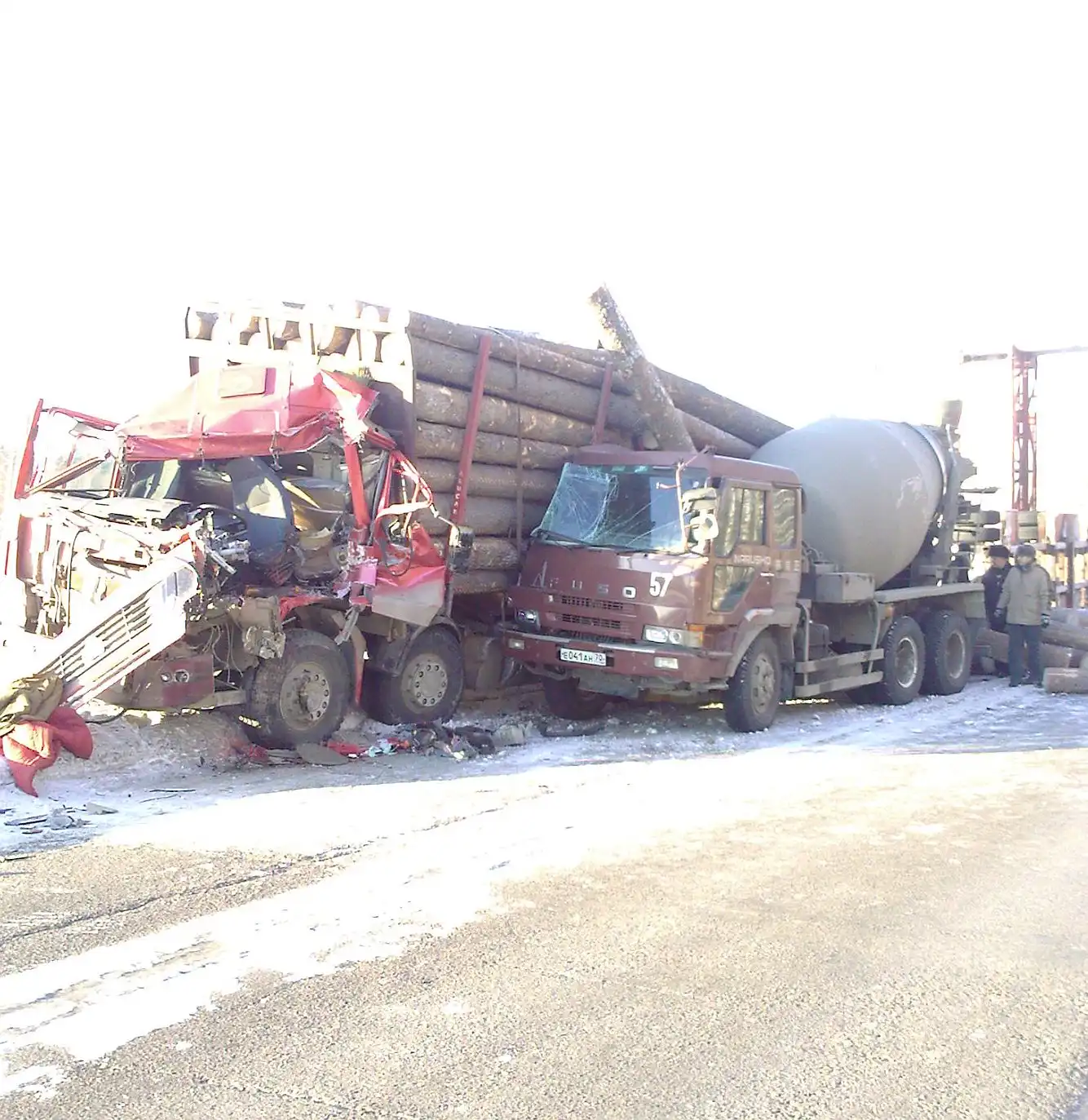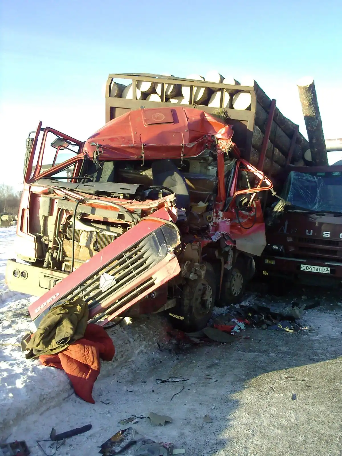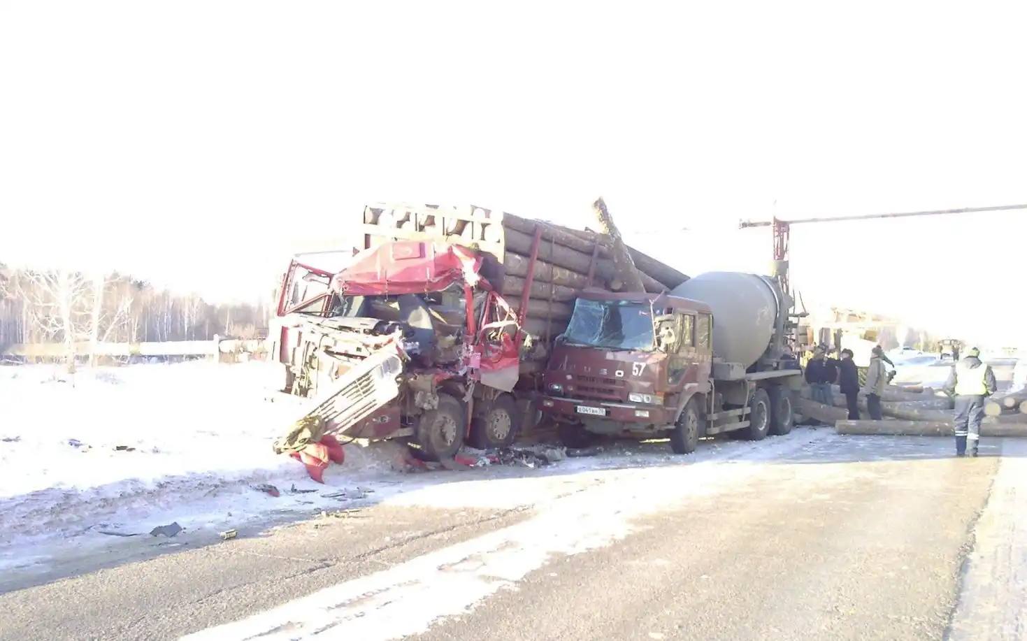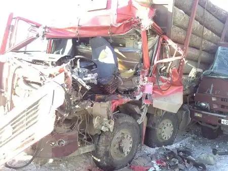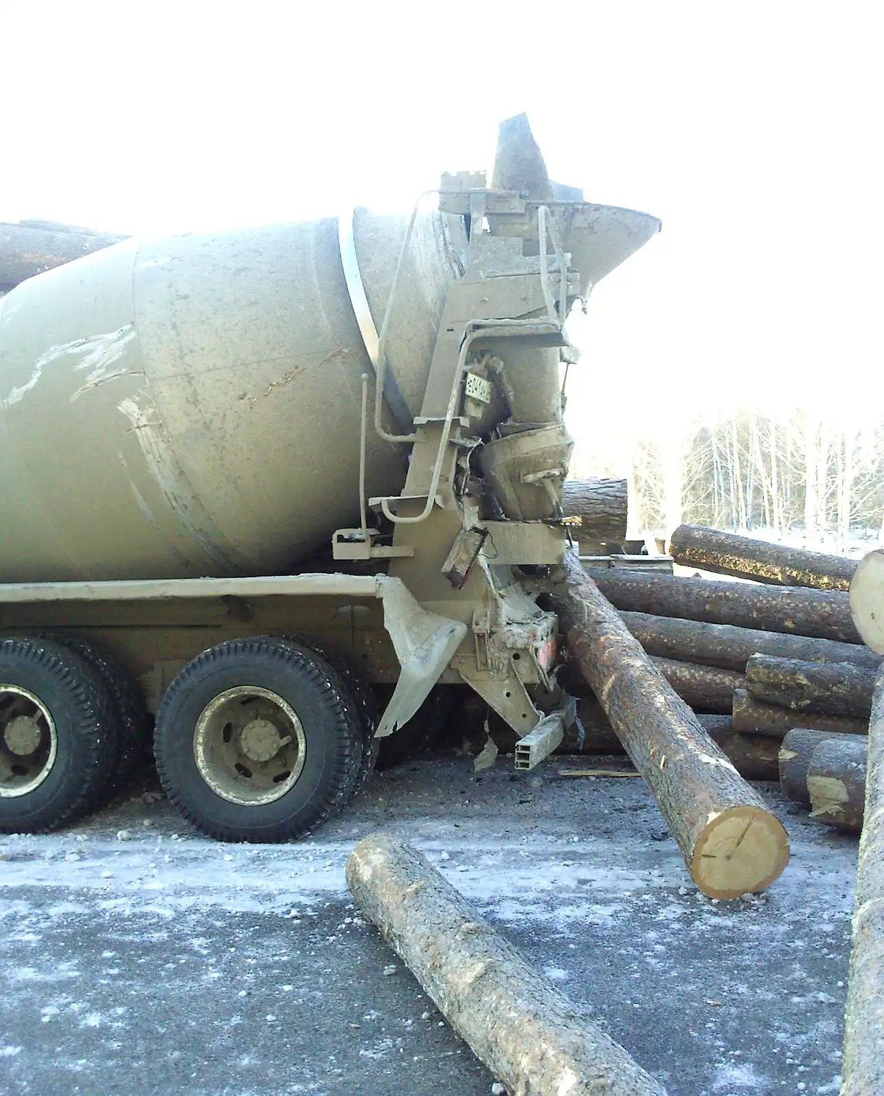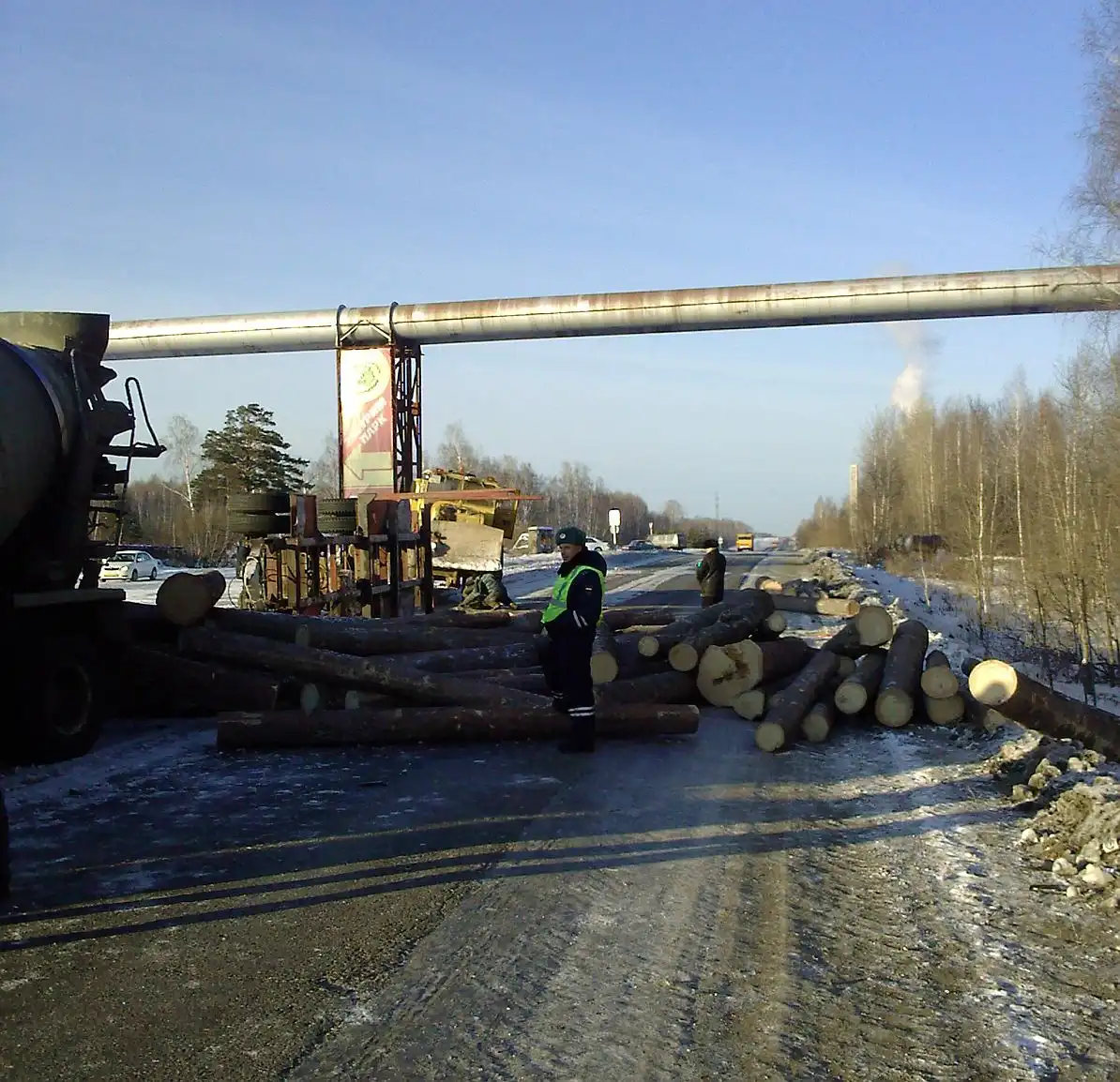 Авария на Нефтехиме 14.11.2009 г. Лесовоз въехал во впереди идущую машину, бревна с перевернувшейся телеги скатились на иномарку (её уже увезли )...
