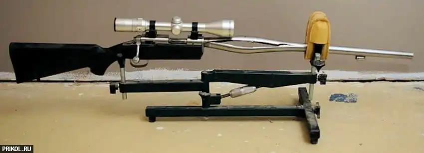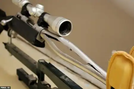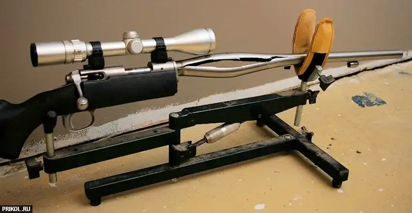 От выстрела у винтовки разорвало ствол. Как раз в том месте, где находится цевье, за которое держался стрелок. Жесть!