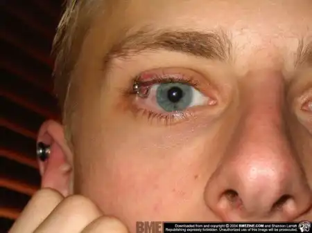 Я бы не советовал такое повторять. Мало того, что это не слишком полезно для глаза, мягко говоря, так еще и эстетическая ценность подобного "украшения" себя довольно сомнительна. Хотя, конечно, каждый имеет право...