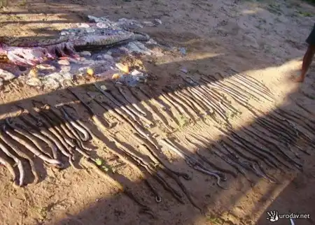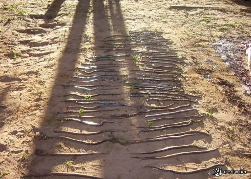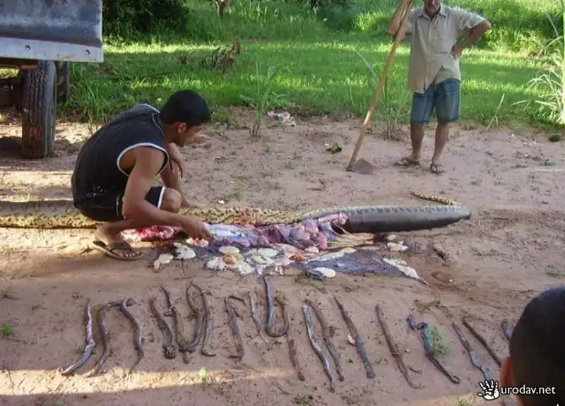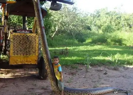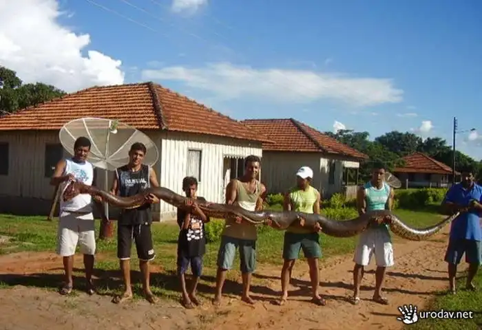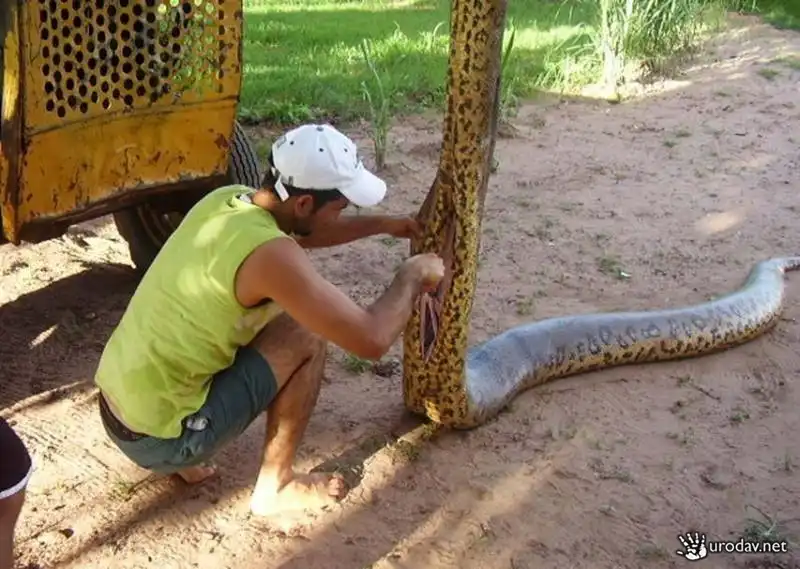 Надеясь на что-нить вкусненькое , в один деревенский дом на Шри Ланке забралась 5и метровая гигантская анаконда. Перед походом за человечиной , рептилия сожрала целое змеиное гнездо . Однако в доме охотника , змея обрела покой , получив тесаком по голове