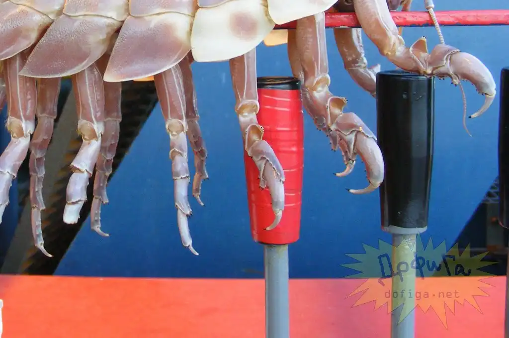 Гигантские изоподы достигают 16 дюймов (40 см ) в длину и одни из самых больших представителей семьи ракообразных. Они очень древние. Когда им угрожает опасность, изоподы сворачиваются в плотный клубок, таким образом защищаясь своим мощным «бронированным» панцирем.
