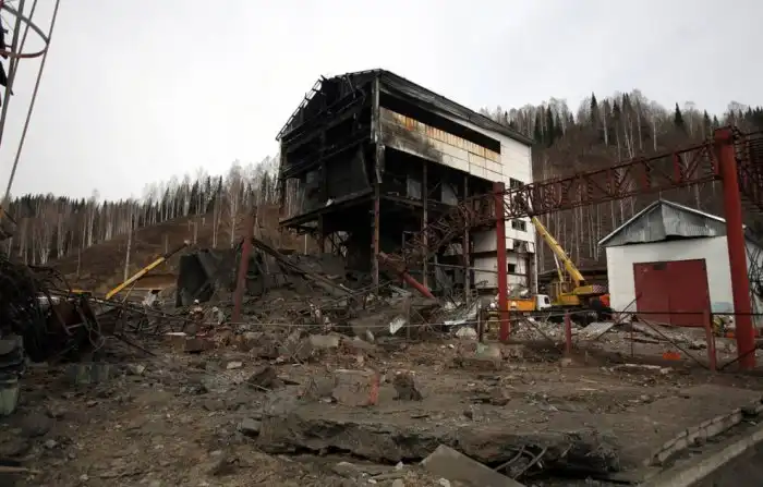 Общий вид на здание кузбасской шахты "Распадская", разрушенное подземным взрывом. (AFP - Getty Images)