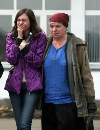 Родственники шахтеров у входа в шахту "Распадская" в Междуреченске 10 мая. (AFP - Getty Images/Юрий Юрьев)