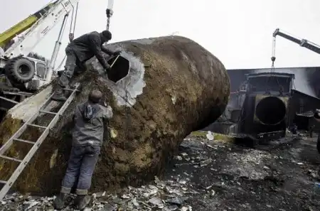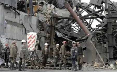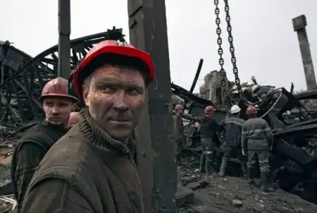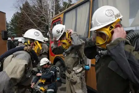 Авария на "Распадской", где добыча угля происходит на большой глубине - уникальный случай для отрасли. Возможная причина взрывов - внезапный выброс газа, который можно расценивать как загадку природы. Кроме того, уникален еще и тот факт, что после первого, произошел и второй взрыв. (REUTERS/Александр Уракчин)