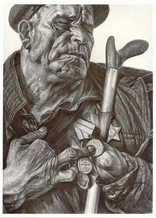От изуродованной руки солдата, от пальца, нащупавшего медаль за Сталинград — «О, там был ад!» — невозможно отвести взгляда.