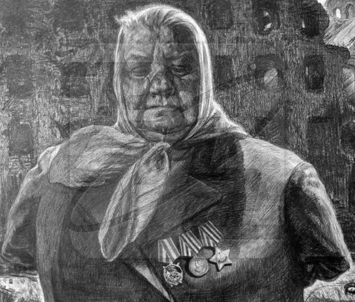 Добров писал портреты обездвиженных, безногих, слепых и одной женщины без лица, упавшей в обморок прямо в печь от вести, что началась война.