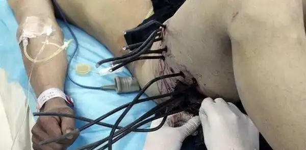 23-летний китайский строитель очень неудачно на них упал. После 4х часов хирургического вмешательства все 13 штук были удалены.