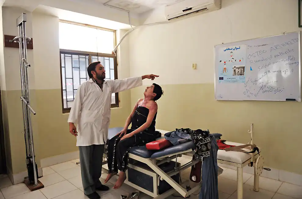 12. 21-летняя Ферух во время сеанса физиотерапии, основная цель которой – предотвратить атрофию мышц. Самосожжение особенно распространено в Герате и на западе Афганистана.