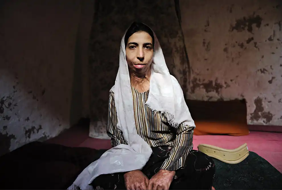 1. Афганская провинция Герат. 21-летняя Захра позирует фотографу в комнате, в которой она живет вместе со своей матерью. Шесть лет назад Захра пыталась сжечь себя, поскольку не хотела выходить замуж за человека, которого выбрали ей ее родные. С тех пор как Захра подожгла себя, жених пропал и больше не появлялся. В афганской культуре обручение имеет такую же силу, как и брак, и поэтому Захра не может найти другого мужа, пока не разорвет помолвку.